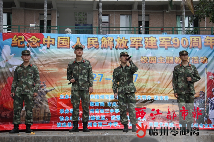 強軍小樂隊在梧州市第二中學表演(2017年5月22日攝)。