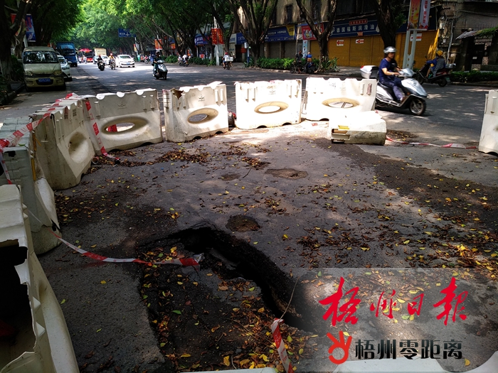 8月20日,在富民二路,人們從一處下沉的路面旁邊經(jīng)過。 前段時(shí)間富民二路中盈運(yùn)動(dòng)中心門前道路發(fā)生路面下沉現(xiàn)象。記者在現(xiàn)場(chǎng)看到,下沉路面的內(nèi)部已被掏空,市政管理部門已在現(xiàn)場(chǎng)實(shí)施了圍蔽。有市民反映,該路面下沉已有大半個(gè)月時(shí)間,給來往的車輛造成極大的不便,卻一直不見有人前來修復(fù),希望相關(guān)部門能盡快修復(fù)道路,恢復(fù)暢通。梧州日?qǐng)?bào)記者 李鴻榮 攝 |