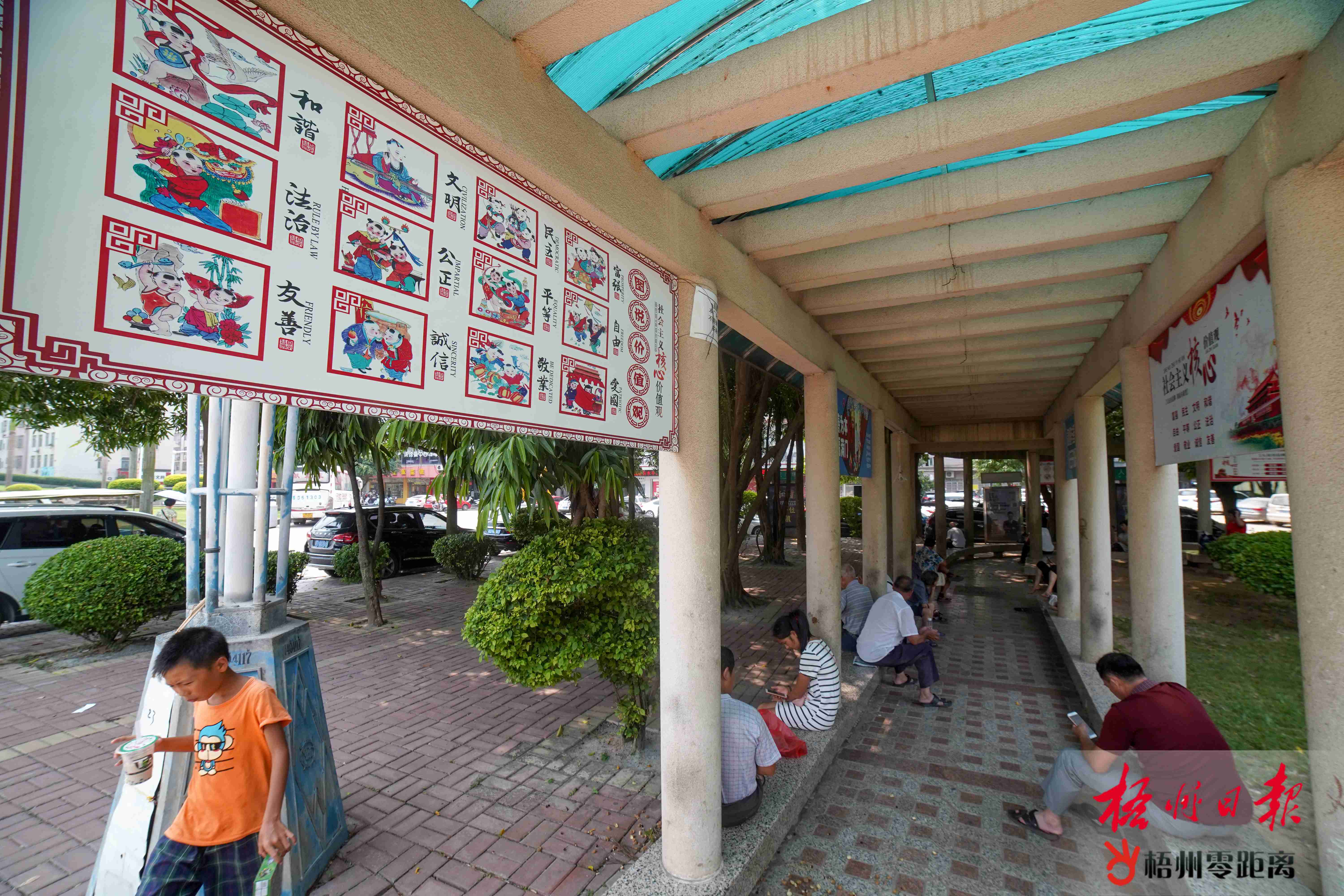 龍圩區(qū)世紀(jì)廣場上的一處休閑長廊內(nèi),放置了多幅社會主義核心價(jià)值觀宣傳畫。(拍攝于8月23日) 陳凡 攝