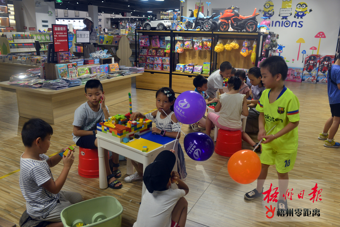 8月21日,一群兒童扎堆在我市一家書城閱讀、玩耍開發智力。