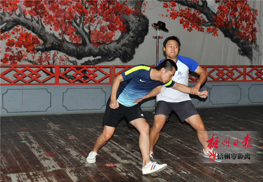 梧州零距離-梧州日報記者 盧海燕 /文 通訊員 李偉心/攝 (除署名外) 臺上風光無限,臺下艱苦自知,任何一個戲劇演員,不經過苦練,就不能有驕人的成就;任何一個劇種,不經過歲月的考驗,就不能承載厚重的文化。粵劇中武生這一行當不僅要求演員們要擁有一身好武功,演技同樣不能落下,細節也必須處理到位,同時還考驗著他們的記憶力和應變能力。沒有臺下艱苦的十年功,就沒有臺上精彩的一分鐘。