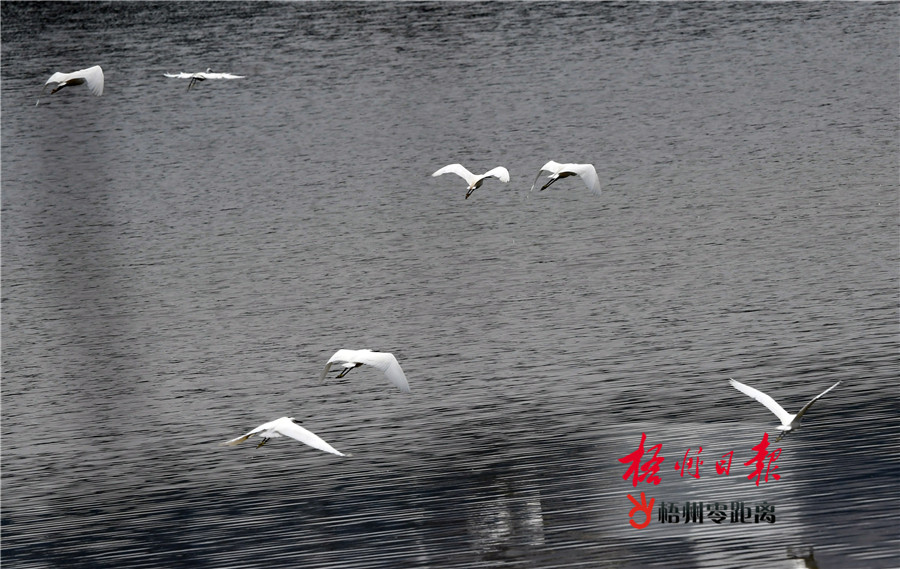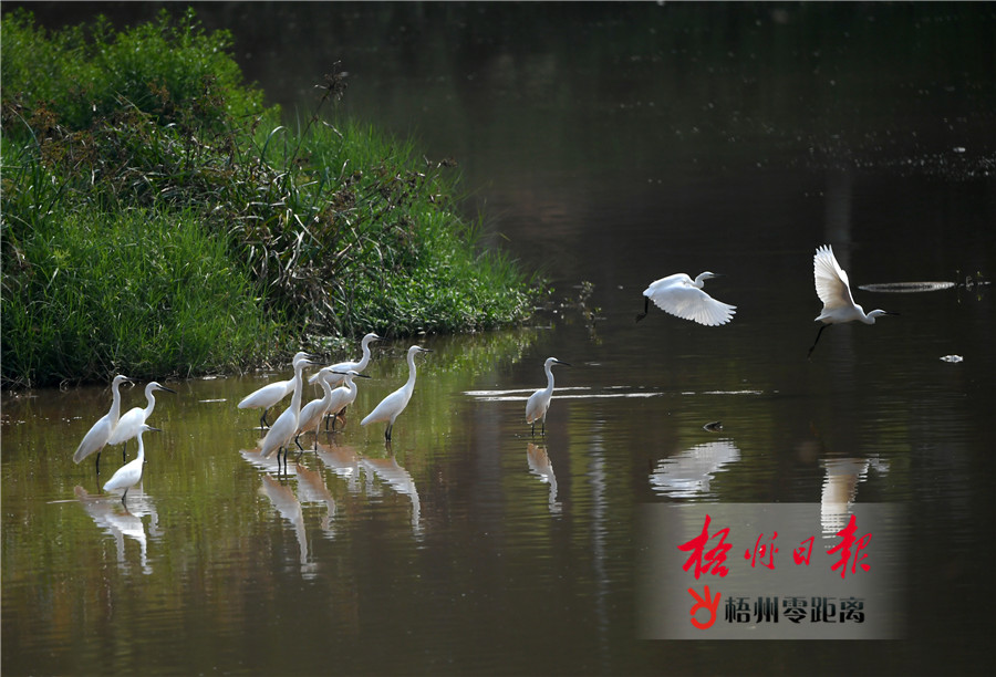時下,玫瑰湖湖心及湖邊濕地出現一群群白鷺身影,它們或覓食、或嬉戲,優美的身影不時掠過湖面,構成了玫瑰湖公園一幅幅美麗畫面。隨著玫瑰湖生態的改善、提升,良好的濕地環境使白鷺在這里繁殖,白鷺數量明顯增加。(梧州零距離-梧州日報記者 蒙紹松 攝)
