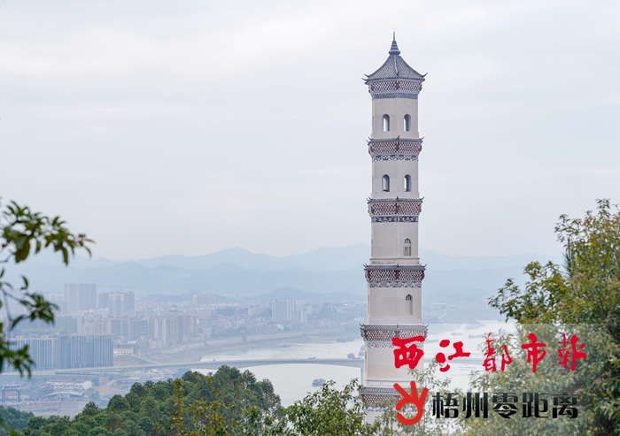 遠眺炳蔚塔。陳凡 攝 初秋的一個晴朗之晨,我攜孫女、偕二位詩友到位于梧州市南岸的鐵頂角游玩。 在鐵頂角山腳有一條山沖,沖內有一眼恩義泉,令我們慕名而去。來到沖口,抬頭張望,只見高高的門匾上“恩義泉”三個鐫刻的紅漆大字赫然在目。無污染、清澈甘甜的山泉水由一條膠管從深沖內引入蓄水池,水池安裝有多個水龍頭,方便群眾取水。水龍頭下盛水的大桶小桶、圓罐方罐排著長長的隊。據說,用這里的泉水泡茶隔夜不餿,所以來取水的群眾絡繹不絕。沖口右側建有一個涼亭,排隊等候盛水的群眾可以坐在亭里聊天、下棋、打撲克。 告別恩義泉,我們開始攀登鐵頂角。從沖口右側的山腳至山頂,新筑了一條石級道路,道路兩旁設有護欄,我們攀著護欄,拾級而上。走走停停,不時拍幾張美照,20多分鐘就到了半山。這里有新建的涼亭一座,還未命名。涼亭背山瀕水,四角飛翹,雕梁畫棟。在這里小憩,波光塔影,西江舫舟,虹橋車馬,戎城梧州,全收眼底。這里還是人們晨練的好地方,亭里亭外可容納二三十人打太極拳。 小憩后,我們繼續往上攀登了約20分鐘就到達鐵頂角之巔——炳蔚塔。該塔始建于清道光三年(1823年),由當時的廣平、大坡、新地、林水、龍圩五鄉民眾集資所建,塔身為正六邊形,高七層。塔身于1949年被雷電擊毀兩層,1990年修復為七層。當年修復時,我還參加了挑磚、擔沙上山的義務勞動。 自1990年修復炳蔚塔至今,時光又過去二十多年,由于年久月深,風雨侵蝕,炳蔚塔又變成了危塔。去年,在梧州市黨政領導的重視和支持下,炳蔚塔開始重修,現已完成。新修的炳蔚塔總高度為51.5米,底徑8.2米,占地77.56平方米。塔首層門額刻有“文巒聳秀”四字,字體端莊渾厚,是清代梧州府知事袁渭鐘手書。二層門額刻有“炳蔚塔”三字,字體蒼勁毓秀,是中國最后一位“三元及第”的狀元陳繼昌手書。該塔于2018年12月8日被列為自治區級文物保護單位。 站在鐵頂角山巔遠眺,我心潮澎湃,作詞一闋以記之: 踏月·炳蔚塔遠眺 三洲染黛,江水如飄帶。紅嶺蝶山呈錦,戎城也,容顏改。廣場翁與太,舞姿尤可愛。唐韻宋音遐邇,聽不盡,心澎湃。 (程家清) |