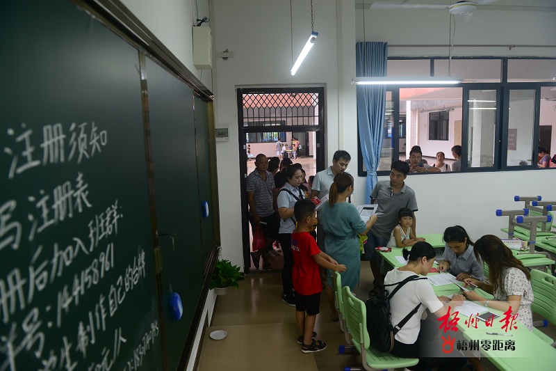 8月30日上午,在梧州鳳翔小學(xué),家長(zhǎng)和學(xué)生們正在排隊(duì)等候注冊(cè)。據(jù)悉,梧州鳳翔小學(xué)位于長(zhǎng)洲區(qū)石仁沖內(nèi),經(jīng)過(guò)一年多時(shí)間施工建設(shè),新校園在今年秋季開(kāi)學(xué)如期投入使用。8月30日是我市中小學(xué)集中注冊(cè)時(shí)間,當(dāng)天上午不少家長(zhǎng)和新生都來(lái)到鳳翔小學(xué)注冊(cè)報(bào)名。據(jù)了解,今年秋季學(xué)期該小學(xué)計(jì)劃一年級(jí)開(kāi)設(shè)8個(gè)班,招納新生超過(guò)400人。記者 李鴻榮 攝 |