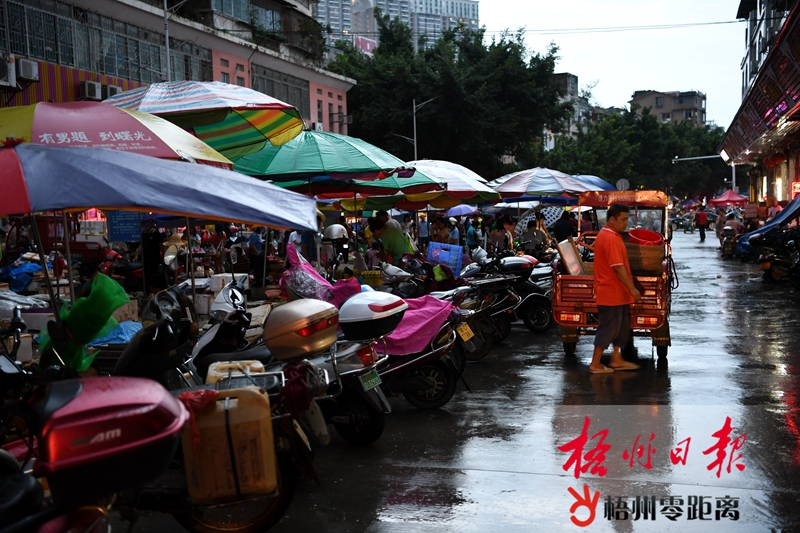 8月31日傍晚,在新城市場外臨時擺賣點周邊,兩輪車等車輛無序停放。