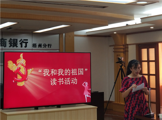 8月24日,工商銀行梧州分行舉辦“我和我的祖國”讀書活動,以推動工商銀行廣西分行“樂學善思、開放務實、擔當協作、創新進取”的特色企業文化核心理念落地深植,打造“書香工行”的全員閱讀氛圍,健全常態化學習機制,提高員工隊伍綜合素質。 活動中,青年員工結合自己閱讀過的一段文字或一本書,分享交流自己參加工作以來的體會感想、親身經歷的營銷小故事等。
