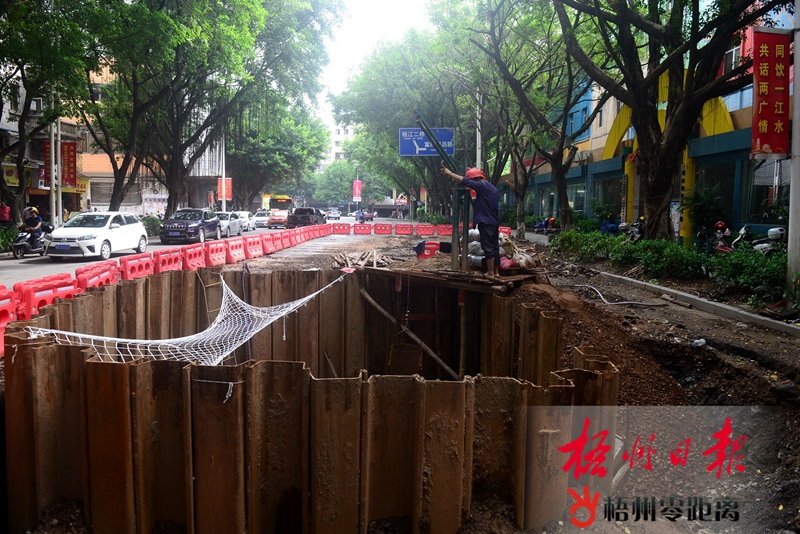 9月4日,在富民二路,工人正在挖掘沉井下的淤泥。