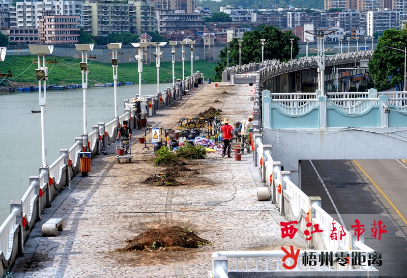 近日,梧州市河?xùn)|防洪堤桂江段進行提升改造施工,范圍為從龍母廟對出至鴛江大橋東橋頭段的防洪堤堤頂路。記者 陳凡 攝
