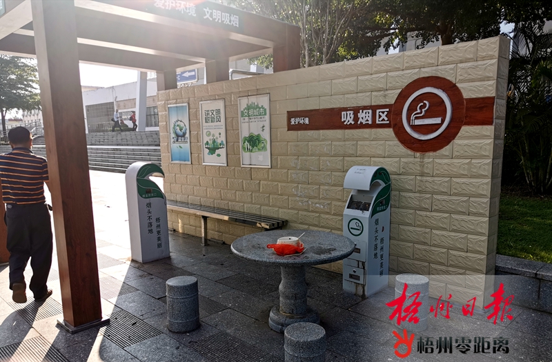 9月3日,梧州火車站站前廣場設置有吸煙區(qū),但乘客遺留的垃圾未能及時清理,影響了衛(wèi)生。記者 曾燕 攝 |