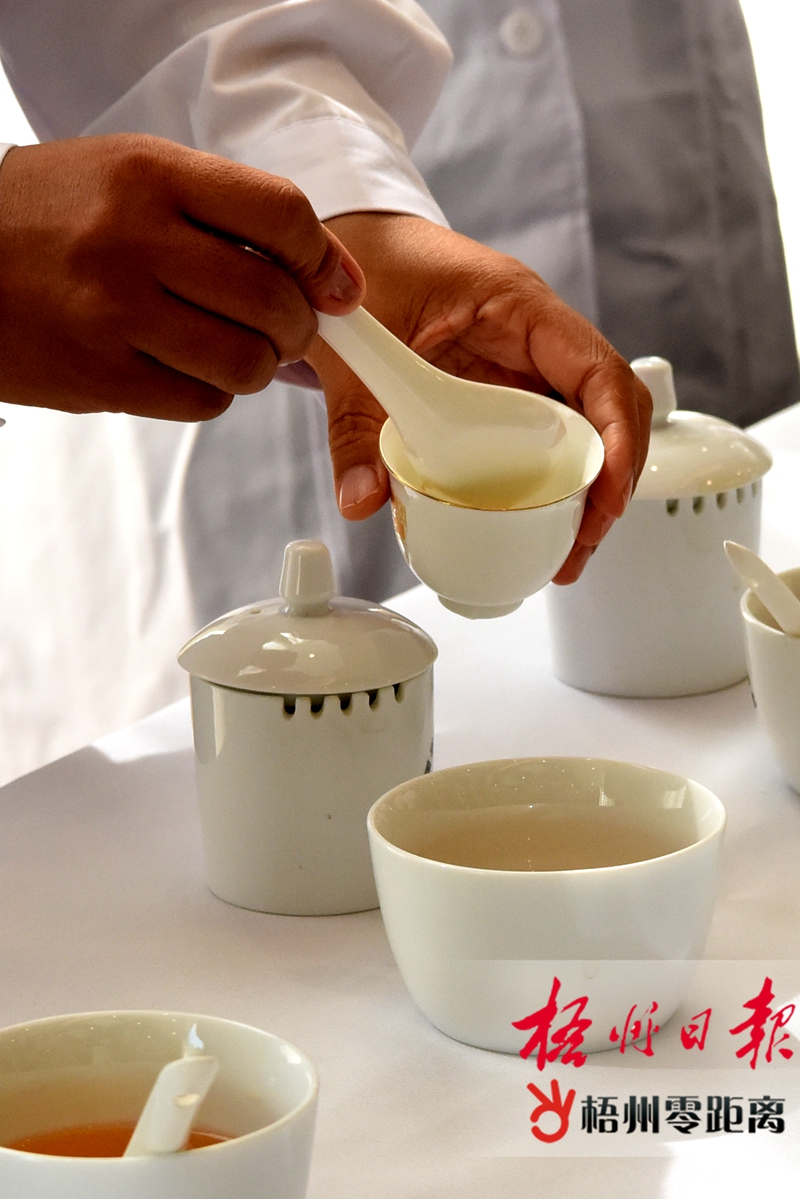 干茶的香味也是評(píng)委們所看重的。 構(gòu)架產(chǎn)業(yè)互鑒橋梁 緣聚西江畔,茶系兩岸情。桂臺(tái)(梧州)茶產(chǎn)業(yè)創(chuàng)新發(fā)展論壇暨茶葉交易會(huì)是兩岸茶業(yè)界人士及頂尖茶產(chǎn)品互鑒共賞、交流合作的平臺(tái)和橋梁。廣西茶企對(duì)本次活動(dòng)既重視又滿懷期待,在評(píng)茶活動(dòng)中,大部分地級(jí)市都選送了茶葉樣品參賽。茶企的參與熱度遠(yuǎn)超今年4月在南寧市舉行的斗茶大賽。 據(jù)主辦方介紹,本次評(píng)茶活動(dòng)的開(kāi)放度、公平性更高,對(duì)茶企的送樣不再設(shè)置初審環(huán)節(jié),每一份送樣都直接進(jìn)入評(píng)審。而且每一家參賽企業(yè)都可以在賽后向主辦方提出申請(qǐng),查閱得分,以及獲得評(píng)審專家的點(diǎn)評(píng)和建議。 “正是放寬了參賽要求,我們收到了更多中小企業(yè)選送的樣品,大開(kāi)眼界?!睆V西茶葉科學(xué)研究所所長(zhǎng)、研究員韋靜峰欣喜地說(shuō),廣西各地市選送樣品多為六堡茶,得分普遍較高,可見(jiàn)中小企業(yè)的制茶工藝和茶葉種植水平經(jīng)過(guò)自治區(qū)近幾年來(lái)的扶持發(fā)展,有了長(zhǎng)足的進(jìn)步。梧州市要深入實(shí)施自治區(qū)重大科技專項(xiàng),盡快突破茶園面積瓶頸,提高單產(chǎn)和質(zhì)量,引領(lǐng)廣西黑茶、廣西六堡茶產(chǎn)業(yè)發(fā)展。 賽事雖已落幕,但參加桂臺(tái)(梧州)茶產(chǎn)業(yè)創(chuàng)新發(fā)展論壇的學(xué)者、專家、茶企等與會(huì)嘉賓們的“茶話會(huì)”暢敘正酣。 花絮 評(píng)茶現(xiàn)場(chǎng)的茶葉愛(ài)好者 9月6日上午,在2019年(第二屆)桂臺(tái)(梧州)茶產(chǎn)業(yè)創(chuàng)新發(fā)展論壇暨茶葉交易會(huì)茶葉評(píng)比大賽現(xiàn)場(chǎng),作為一位忠實(shí)的六堡茶愛(ài)好者,楊麥的眼神一直不離評(píng)審臺(tái),翹首關(guān)注著六堡茶評(píng)審的整個(gè)過(guò)程。 比賽“升級(jí)”是楊麥作為觀眾最直觀的感受,他說(shuō),比起三年前第一屆桂臺(tái)茶產(chǎn)業(yè)創(chuàng)新發(fā)展論壇暨茶葉交易會(huì),這一屆的茶葉評(píng)比大賽的參賽樣品更為豐富,整體擴(kuò)大了茶葉的評(píng)比面,既有廣西各地生產(chǎn)加工的六堡茶,也有白茶、紅茶、烏龍茶等。另外,梧州日?qǐng)?bào)社作為茶事活動(dòng)的承辦方,是媒體融合發(fā)展促進(jìn)六堡茶公共品牌對(duì)外宣傳的一次有效實(shí)踐,全媒體展示平臺(tái)也為本次桂臺(tái)論壇提供了全方位的輿論支撐,對(duì)關(guān)注活動(dòng)的愛(ài)好者來(lái)說(shuō)十分“解渴”。 作為茶葉愛(ài)好者,楊麥認(rèn)為這次桂臺(tái)兩地茶產(chǎn)業(yè)“牽手”,突破了以往以六堡茶為單一視角的看法,促進(jìn)了六堡茶與其他茶葉品類在地域上、工藝上以及感官上的相互交流與學(xué)習(xí),拓展了梧州茶葉愛(ài)好者的視野。希望以后梧州市能在以六堡茶為茶產(chǎn)業(yè)核心的同時(shí),豐富茶產(chǎn)業(yè)的品類體系全面發(fā)展。 記者 盧海燕 “細(xì)節(jié)控”確保大賽公平公正 為了確保茶葉評(píng)比大賽的公平性和公正性,現(xiàn)場(chǎng)的公證員、工作人員及評(píng)委都不敢有絲毫的馬虎。 茶葉評(píng)比大賽開(kāi)始前,梧州市公證處的兩名工作人員已經(jīng)忙碌起來(lái)了。她們身旁的大箱子里裝滿各個(gè)茶企的評(píng)茶樣品,每種茶葉均用紙袋統(tǒng)一包裝、統(tǒng)一封存。只見(jiàn)她們從箱子里取出一袋袋茶葉,貼上標(biāo)簽把原有的數(shù)字號(hào)碼完全覆蓋,再隨機(jī)寫(xiě)上一個(gè)編號(hào)。 公證員黃瑩說(shuō):“為了體現(xiàn)公正、公平、公開(kāi)原則,大賽采用密碼評(píng)審法進(jìn)行評(píng)比。我們對(duì)評(píng)茶樣品進(jìn)行重新編碼,并記錄在《評(píng)茶樣品編號(hào)密碼表》中,評(píng)茶時(shí),讓評(píng)委隨機(jī)抽取樣品進(jìn)行評(píng)審,我們負(fù)責(zé)監(jiān)督整個(gè)評(píng)茶過(guò)程?!?/p>