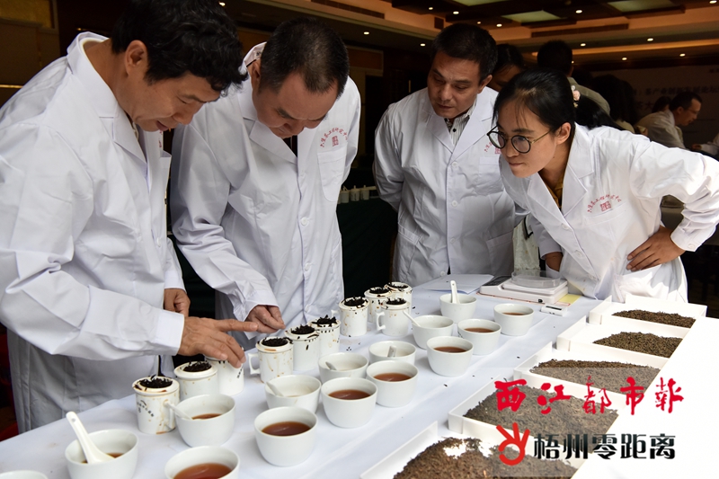 梧州零距離網-西江都市報訊(記者 吳艷虹)9月6日,以“緣聚西江畔·茶系兩岸情”為主題的2019年(第二屆)桂臺(梧州)茶產業創新發展論壇暨茶葉交易會茶葉評比大賽,在江濱大酒店舉行。參評企業來自廣西轄區范圍內和臺灣地區的黑茶、綠茶、紅茶、烏龍茶等生產企業。經過激烈的競逐,最終,蒼梧六堡茶業有限公司等8家茶企提供的茶品獲得了黑茶組特等獎。 本次大賽由中國茶葉流通協會、梧州市人民政府、廣西壯族自治區科學技術廳、廣西壯族自治區人民政府臺灣事務辦公室等聯合主辦,大賽邀請了來自全國各地的10名專家擔任評委,包括南京農業大學博士生導師、教授黎星輝,廣西職業技術學院教授農艷芳,臺灣茶協會常務理事李明璋,前臺灣省茶業改良場凍頂工作站主任張連發等。