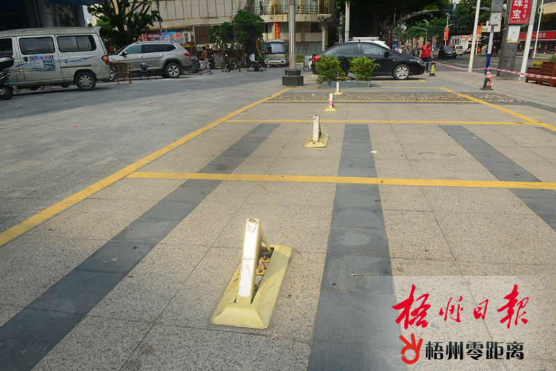 在西江二路云龍大橋橋頭附近,人們?cè)谌诵械郎习惭b地鎖,把公共地帶變成了私人停車場(chǎng)。 梧州零距離網(wǎng)-梧州日?qǐng)?bào)記者 李鴻榮 攝