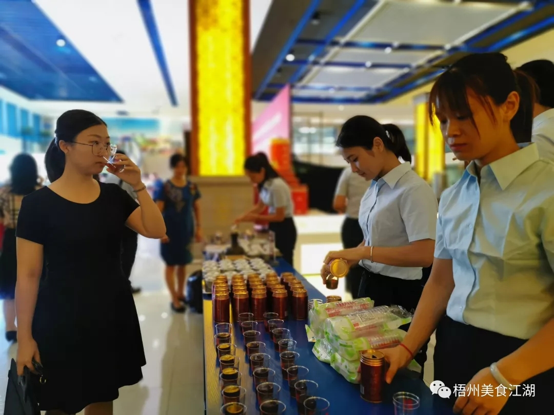下火龜苓寶現場展示 9月3日上午,自治區非物質文化遺產梧州龜苓膏歷史文化研討會暨中華老字號“雙錢”在中恒集團雙錢文化博覽園舉行了2019新品發布會,發布會上發布了一系列新品:下火飲料龜苓寶、精制高端金裝雙錢龜苓膏、雙錢六堡茶和雙錢坭興陶。 在發布會上,食俠第一次嘗試了“可以喝的龜苓膏”——龜苓寶。 入口一股濃濃的龜苓膏味,卻不覺半分苦澀感,清涼甘甜,回味無窮,一杯下肚,遍體生涼。