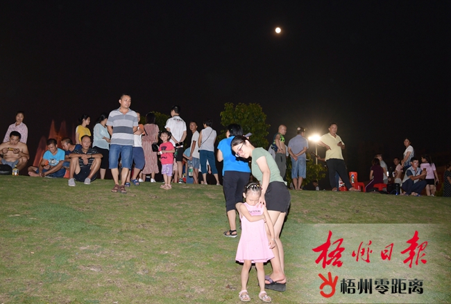 梧州零距離網-梧州日報訊(記者 曾韻)又到一年一度的中秋佳節。9月13日晚,我市各公園景區、大街小巷到處洋溢著歡樂和諧的節日氣氛,市民以各種方式歡度中秋佳節。