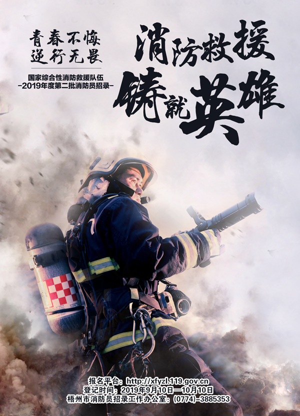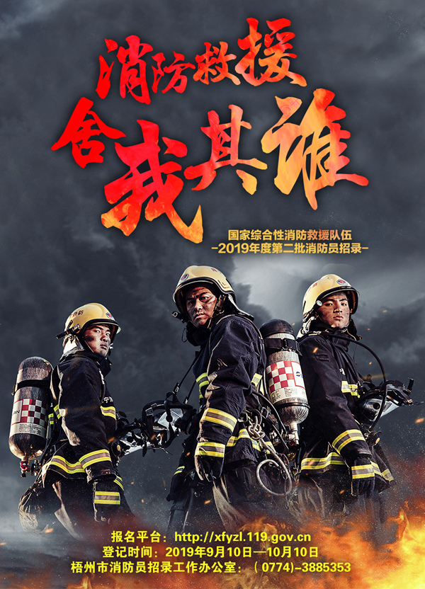 為有效履行防范化解重大安全風險、應對處置各類災害事故的職責使命,根據(jù)《中華人民共和國消防救援銜條例》《國家綜合性消防救援隊伍消防員招錄辦法(試行)》(人社部規(guī)〔2018〕5號)等法規(guī)政策,現(xiàn)就廣西消防救援隊伍2019年度第二次面向社會招錄消防員相關事項公告如下: