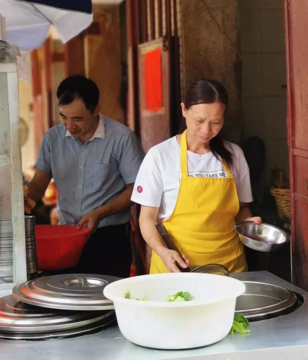 老板和老板娘 這家店是夫妻店,二人都是廣西桂林人。2003年夫妻倆來到梧州幫朋友打理桂林米粉店,店鋪在舊人民醫院旁。后來朋友教會了二人煮桂林米粉的手藝后就回了桂林老家,老板便接手了店鋪。因為他們的桂林米粉味道正宗,得到了眾多醫生護士、病人家屬食客的好評。醫院搬走之后,老板在太和沖找到了現在這個店鋪,位置雖然有點偏,但空間夠大,老板覺得只要食物味道好,分量足,生客自然也就慢慢變成熟客了。