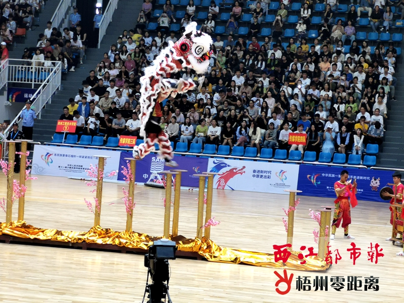 梧州零距離網(wǎng)-西江都市報訊(記者 姚藍(lán)婷 通訊員 鄧炎森)9月16日,記者從藤縣縣委宣傳部獲悉,在第十一屆全國少數(shù)民族傳統(tǒng)體育運(yùn)動會上,來自梧州的藤縣禤洲龍獅團(tuán)獲得表演項(xiàng)目技巧類一等獎(金牌),這也是藤縣運(yùn)動員首次參加全國少數(shù)民族傳統(tǒng)體育運(yùn)動會并獲得佳績。 9月8日,第十一屆全國少數(shù)民族傳統(tǒng)體育運(yùn)動會在河南鄭州市開幕。經(jīng)過區(qū)內(nèi)層層選拔,共有24支隊(duì)伍代表廣西出征。這些隊(duì)伍將參加花炮、珍珠球等13個競賽項(xiàng)目和8個表演項(xiàng)目。其中,藤縣禤洲龍獅團(tuán)在表演項(xiàng)目隊(duì)伍之列,參加運(yùn)動會技巧類表演項(xiàng)目的比賽。 藤縣禤洲龍獅團(tuán)此次帶來的是《高樁舞獅》的表演,他們參加了兩輪表演,時間分別是9月10日和9月14日,兩輪表演的分?jǐn)?shù)相加為該項(xiàng)目的最終成績。“咚鏘咚咚鏘……”賽場上,伴隨著密集的鼓鑼聲,身姿矯健的獅子在高低錯落的梅花樁上起落跳躍,施展絕技。高樁舞獅是難度大、觀賞性強(qiáng)的舞獅項(xiàng)目之一,數(shù)千觀眾看得目瞪口呆,現(xiàn)場不時爆發(fā)出熱烈的掌聲和贊嘆聲。最終,《高樁舞獅》從20多個省、市、自治區(qū)的40多個技巧類表演項(xiàng)目中脫穎而出,獲得表演項(xiàng)目技巧類一等獎(金牌)。