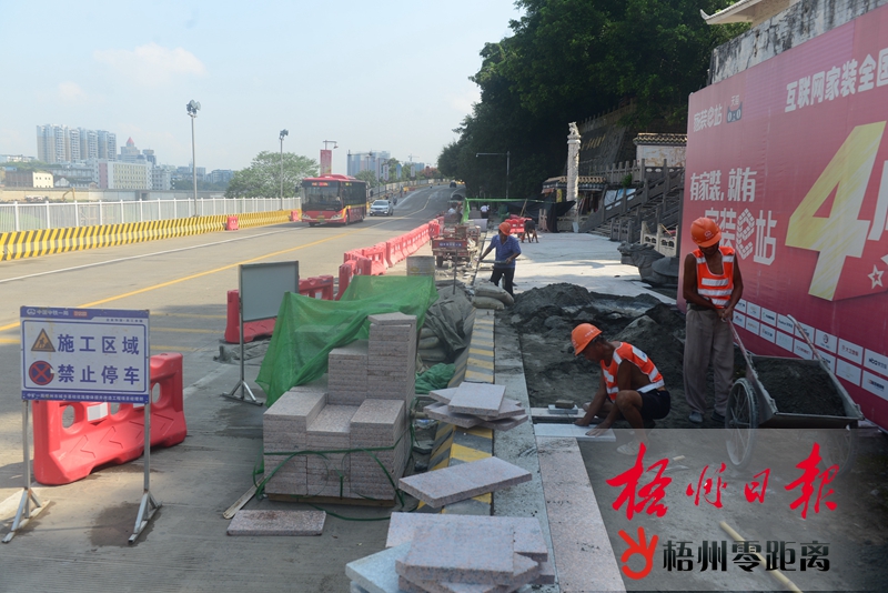 據悉,龍母廟門前道路改造是河東防洪堤改造工程項目之一,此次改造將桂林路龍母廟門前停車位改造為人行道,目前已基本完工。記者 李鴻榮 攝