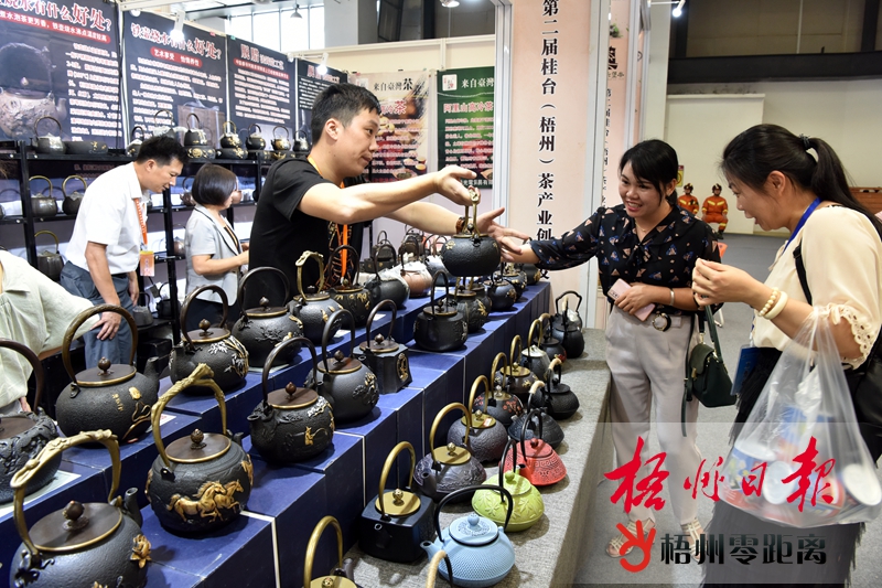 9月17日,在2019年(第二屆)桂臺(梧州)茶產業創新發展論壇暨茶葉交易會現場,市民正在選購心儀的茶具。記者 何鎏 攝