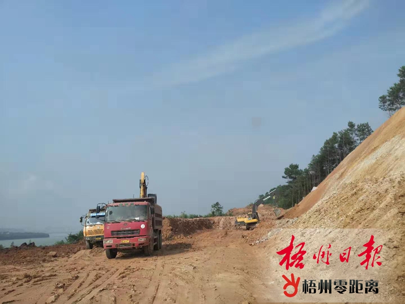 9月18日,在梧州至藤縣藤州鎮城市主干道河囗村路段,大型機械正在進行緊張施工。