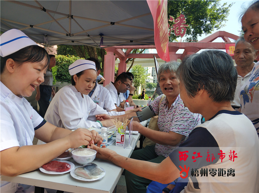 9月20日上午,梧州市衛健委2019年“服務百姓健康行動”在潘塘公園舉行。市工人醫院、市紅十字會醫院、市人民醫院等10家醫療機構,派出醫療、藥學、保健方面的醫務人員,為群眾進行常見病、慢性病的咨詢和初篩,同時,普及艾滋病防治知識及醫學常識,提供健康咨詢。梧州零距離-西江都市報記者 陳素雅 攝