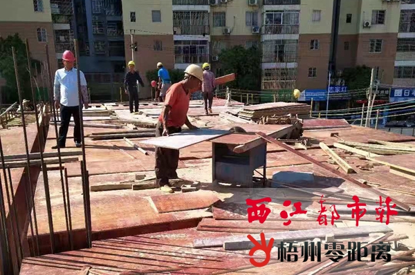 梧州零距離網-西江都市報訊(記者 紀榮蘭)梧州市龍湖小學由廣西梧州嘉華置業有限公司捐建,學校建成后將打造成為龍圩區示范性標準小學,并無償交給龍圩區辦學使用。該項目工程于今年3月份進場施工,目前各項工序正穩步推進。 9月23日,天氣晴好,龍湖小學施工現場一派繁忙景象。重型車輛正在現場裝載土方,吊機等各類大型機械忙著吊裝建筑材料,30多名施工人員在建筑物內綁扎鋼筋。