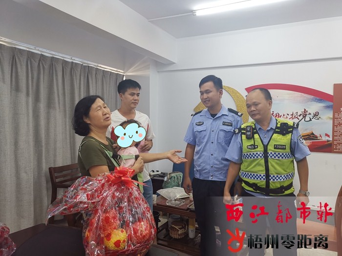 警民接力救助女童 9月23日上午10時(shí)許,陳女士與孫女在家休息。一連數(shù)日的發(fā)燒,讓陳女士不敢離開孫女半步。突然,睡夢(mèng)中的孫女抽搐起來,孩子驚醒后哇哇大哭,臉色變得青白。見此情況,陳女士頓時(shí)慌了,急忙抱起孩子就往醫(yī)院趕去。當(dāng)時(shí),陳女士抱著孩子沖出小區(qū),打算乘搭出租車趕往梧州市工人醫(yī)院。誰知,一路上都沒有找到出租車,當(dāng)陳女士抱著孩子跑到廣匯電器城對(duì)面路段時(shí),腿一軟,走不動(dòng)了,只能蹲在路上向路人求助。 當(dāng)陳女士正無助時(shí),萬秀交警大隊(duì)兩名輔警在熱心路人的帶領(lǐng)下,來到了陳女士面前,他們一人察看孩子的情況,一人快速走向正在路口停車等燈的出租車,請(qǐng)求司機(jī)幫忙。當(dāng)時(shí),司機(jī)李燦林剛送完一名客人,準(zhǔn)備開車到太陽廣場(chǎng)候客,聽到這個(gè)緊急情況,便馬上同意幫助,掉頭載上陳女士和孩子,在警用摩托車的開道下,短短7分鐘就將孩子順利送到了市工人醫(yī)院。 女童家屬感恩致謝 “正能量!為出租車司機(jī)和梧州交警點(diǎn)贊。”昨日,本報(bào)對(duì)事件進(jìn)行報(bào)道后,引起了市民的廣泛關(guān)注及點(diǎn)贊,孩子母親也通過“梧州零距離”微信公眾號(hào)留言表示,希望找到熱心的出租車司機(jī)當(dāng)面致謝,并補(bǔ)回車款。9月24日下午,經(jīng)交警部門及本報(bào)記者聯(lián)絡(luò),女童的奶奶陳女士與司機(jī)李燦林,輔警徐天定、李憶然,有了一場(chǎng)溫馨的會(huì)面。 “真的太謝謝你們了,如果不是你們的幫助,孩子不會(huì)在短短幾分鐘就能被送到醫(yī)院進(jìn)行救治。”24日下午3時(shí),在萬秀交警大隊(duì),陳女士眼泛淚光,向伸出援手的輔警徐天定、李憶然及李燦林深深致謝,還將孩子?jì)寢寣懙母兄x信和致謝果籃送到了三人手中。