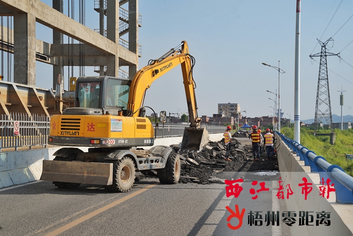 9月25日,施工隊(duì)伍在長(zhǎng)洲水利樞紐大壩內(nèi)江段行車路面展開(kāi)施工。當(dāng)天,長(zhǎng)洲水利樞紐內(nèi)江壩體(靠近龍華一側(cè))道路封閉展開(kāi)維修施工,施工隊(duì)伍在內(nèi)江段壩體行車道破拆路面,準(zhǔn)備翻新道路。施工封路預(yù)計(jì)持續(xù)至10月5日,來(lái)往車輛需繞行。西江都市報(bào)記者 陳凡 攝