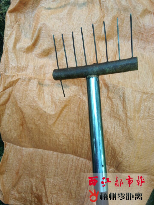 西江都市報記者 紀榮蘭 通訊員 郭慶龍 眼下,又到了八角豐收的季節(jié),在蒼梧縣獅寨鎮(zhèn),各村村民正為采摘、晾曬八角而忙碌著。采摘八角是勞累且危險的活兒,而蒼梧縣獅寨鎮(zhèn)大昌村八角種植戶何燕忠發(fā)明的八角采摘器,卻能在一定程度上幫助村民方便快捷地采摘八角。 9月24日上午,在獅寨鎮(zhèn)舉辦的新型八角采摘器使用現(xiàn)場會上,何燕忠示范如何用自己發(fā)明的八角采摘器采摘八角。八角采摘器由竹竿和鋼絲條制作而成,像一把耙子。何燕忠先利用梯子爬上一棵高約15米的八角樹的樹干,然后把八角采摘器伸到掛滿八角的枝頭,用力把一樹杈的八角刮下來。只見樹上的八角“嘩啦嘩啦”地往下掉,不一會兒,地面上已密密麻麻地布滿八角了。