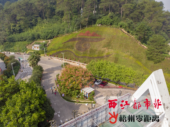 9月26日,梧州白云山公園大門對出邊坡,以不同顏色的花草描繪出白云山景區(qū)徽標(biāo)圖案。為提升景區(qū)周邊景觀,萬秀區(qū)對白云山公園大門對出邊坡先后進(jìn)行地災(zāi)防治和綠化美化,近日該處邊坡上的腳手架拆除,由寶巾花、龍船花、紅花檵木、歐石竹等花草構(gòu)成的邊坡綠景顯現(xiàn),仿佛一幅巨型畫作懸掛在白云路邊。目前整個(gè)邊坡的施工正在收尾,施工人員在路邊修葺花基。 西江都市報(bào)記者 陳凡 攝