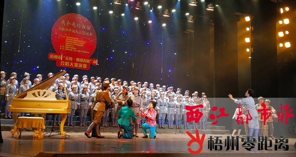 梧州零距離網-梧州日報訊(記者 李欣鞠)9月27日晚,慶祝中華人民共和國成立70周年“我和我的祖國”主題宣傳教育活動——2019年梧州市“天河·瑰湖春曉”杯合唱大賽決賽在市文化展覽中心舉行,以歌聲告白祖國、禮贊祖國。 本次大賽由市委宣傳部、市文明辦、市直屬機關工委、市文廣體旅局、市總工會主辦,通過比賽弘揚社會主義核心價值觀,激發全市“對標先進、趕超跨越”的工作熱情,以優異成績慶祝新中國成立70周年。大賽共有來自全市多個部門、單位、企業的50支隊伍、3000多人參加,經過四個場次的初賽,共評選出12支晉級決賽的隊伍。 晚上7時許,梧州學院以歌曲《請你帶走我的歌》《鮮花映彩虹》率先拉開比賽大幕。萬秀區演唱的歌曲《保衛黃河》,展現了游擊健兒為保衛黃河、保衛全中國而戰斗的英勇場景。國家稅務總局梧州市稅務局的曲目《沒有共產黨就沒有新中國》,歌頌了中國共產黨領導中國人民贏得了抗日戰爭、解放戰爭的勝利,帶領中國走向繁榮富強的豐功偉績。市財政局帶來的歌曲《走向復興》,傳遞了人民永遠跟著中國共產黨,沿著中國特色社會主義道路,向著中華民族偉大復興光明前景奮進的堅強決心。