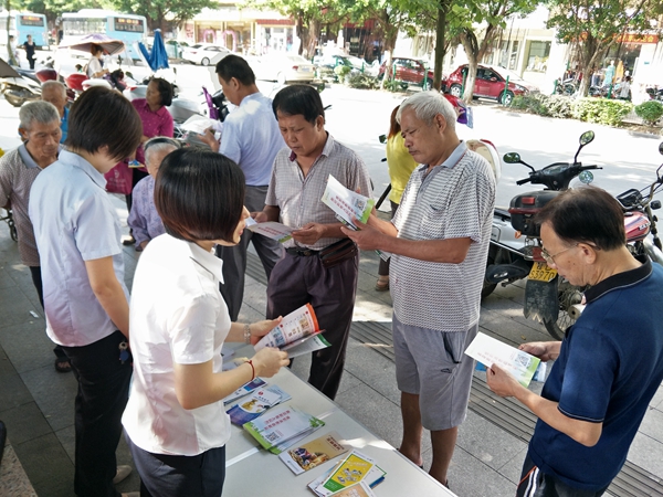 活動期間,梧州市分行安排了業務骨干分批組成宣傳小組,深入到各大商圈、大型超市、市區公園等地進行移動式金融知識宣傳。9月下旬梧州市分行、藤縣支行先后組織宣傳小組在大塘社區、上三云社區、藤縣藤州文化廣場等人流密集地,擺攤設點向過往群眾派發金融知識普及宣傳折頁,現場解說金融投資注意事項,向廣大群眾宣傳防范非法集資、人民幣知識、支付安全、網絡電信詐騙、個人信息保護等金融常識。宣傳活動得到了群眾的積極響應,他們紛紛表示“長見識了”。