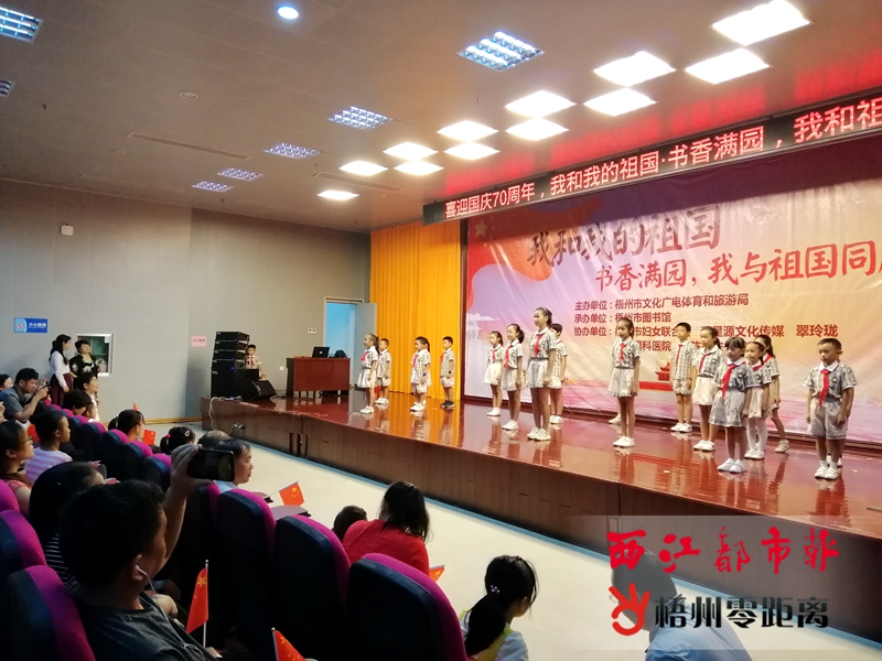 為慶祝中華人民共和國(guó)成立70周年,當(dāng)天梧州市圖書館開展了“我和我的祖國(guó)·書香滿園,我與祖國(guó)同成長(zhǎng)”活動(dòng),活動(dòng)內(nèi)容包括講故事、表演詩朗誦,并互動(dòng)開展手語教學(xué)唱國(guó)歌,讓學(xué)生們?cè)诨顒?dòng)中接受愛國(guó)主義教育。陳松泓 攝影報(bào)道