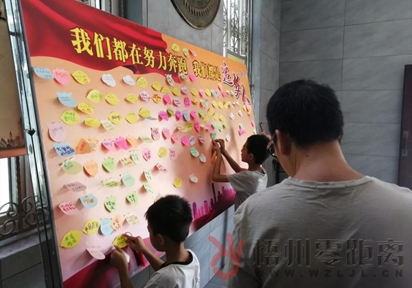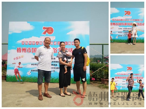 市民在活動展板前合影,為中國足球加油。(梧州體訓基地供圖)