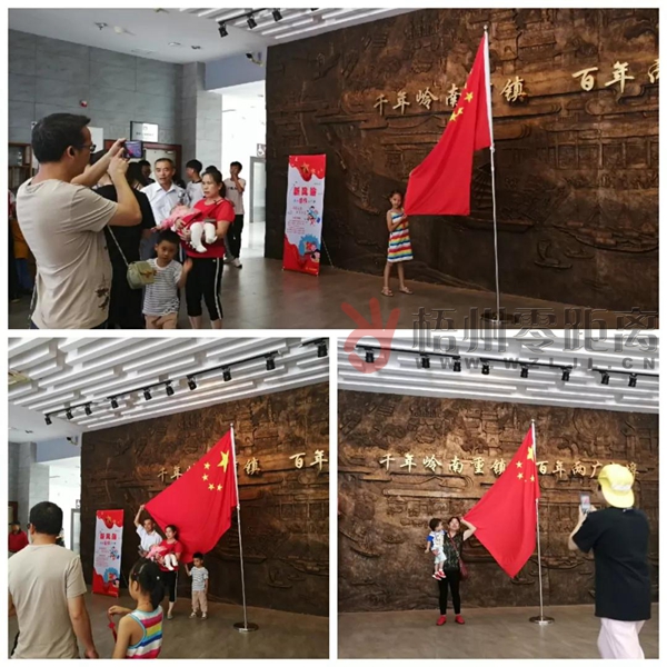 梧州市博物館國慶節期間不放假,推出了免費講解、我與國旗合影、祝福祖國等活動。不少家長帶著孩子一起到博物館了解歷史。市民還爭相與博物館大堂浮雕處的五星紅旗合影。