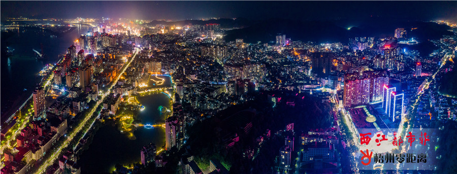 10月11日晚,航拍梧州市區河西片區,萬家燈火和多處城市燈光亮化成果交相輝映,把梧州的夜景裝點得繽紛多彩。近年來,梧州市持續推進城市燈光亮化工程,市區各主要道路、交通路口、高樓大廈、公園景點陸續實施燈光造景亮化,大大提升梧州晚間觀景效果。梧州零距離-西江都市報記者 何鎏 攝