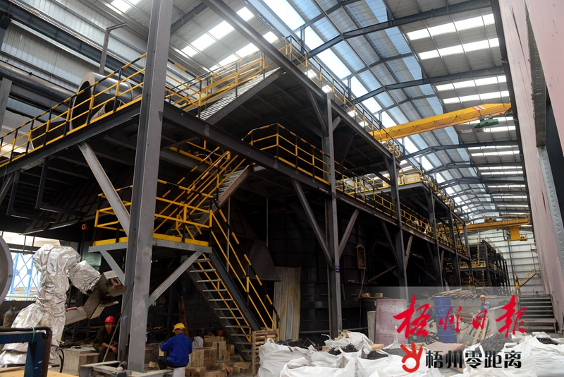 10月15日,在梧州市永鑫有色金屬有限公司年產(chǎn)十萬(wàn)噸再生鋅項(xiàng)目,工人正在廠房里調(diào)試完善生產(chǎn)設(shè)備。 據(jù)了解,該項(xiàng)目位于梧州循環(huán)經(jīng)濟(jì)產(chǎn)業(yè)園區(qū)內(nèi),項(xiàng)目一期已建成揮發(fā)窖、高溫焙燒窖、活性氧化鋅生產(chǎn)線以及其他配套生產(chǎn)設(shè)施,并于9月份試運(yùn)行。目前,技術(shù)人員正在抓緊調(diào)試和完善生產(chǎn)線,爭(zhēng)取項(xiàng)目能早日正式運(yùn)行。記者 李鴻榮 攝 |