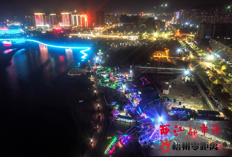10月15日,梧州玫瑰湖公園的燈光夜景連接上三龍大道和湖濱路沿路的萬家燈火,使整個紅嶺片區的夜晚格外璀璨。隨著梧州市城市燈光亮化工程的推進,梧州的夜晚越發變得美麗和時尚。記者 楊揚 攝