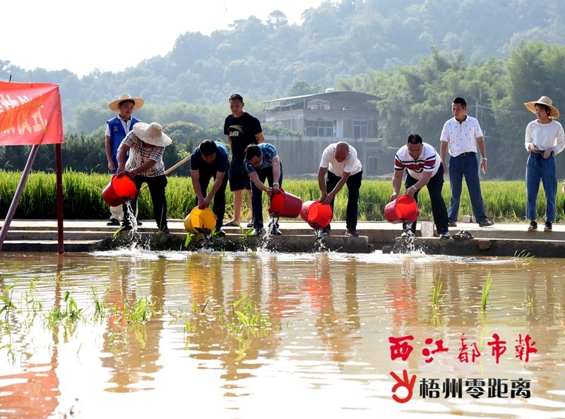 梧州零距離-西江都市報訊(記者 紀榮蘭 通訊員 黃妙麗)10月17日,記者從龍圩區(qū)龍圩鎮(zhèn)政府獲悉,10月16日,梧州市龍圩區(qū)稻漁生態(tài)種養(yǎng)示范基地舉行禾花魚苗投放儀式,現(xiàn)場共投放禾花魚苗20000余尾,標志該示范基地正式投產(chǎn)運營。