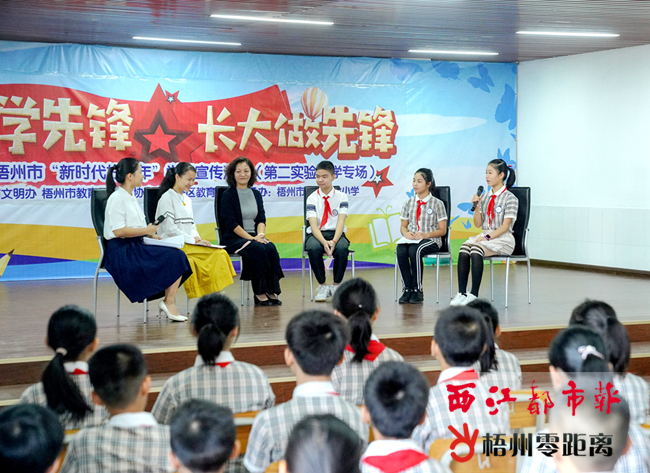 梧州零距離網(wǎng)-梧州日報訊(記者 朱元冬 通訊員 王秋聲 蘇靖)10月21日,由市文明辦和市教育局主辦的“從小學(xué)先鋒、長大做先鋒”——梧州市“新時代好少年”學(xué)習(xí)宣傳活動走進市第二實驗小學(xué),通過觀看影片、事跡報告、歌舞表演等形式,號召同學(xué)們從小學(xué)先鋒、長大做先鋒。