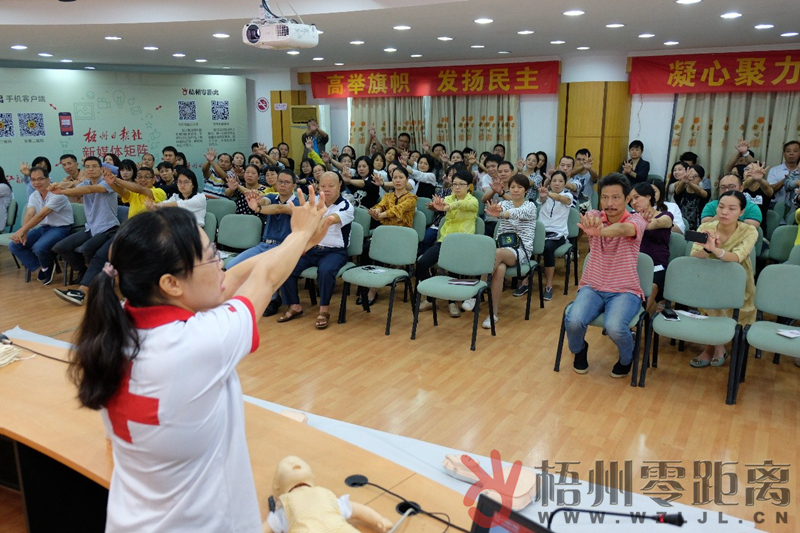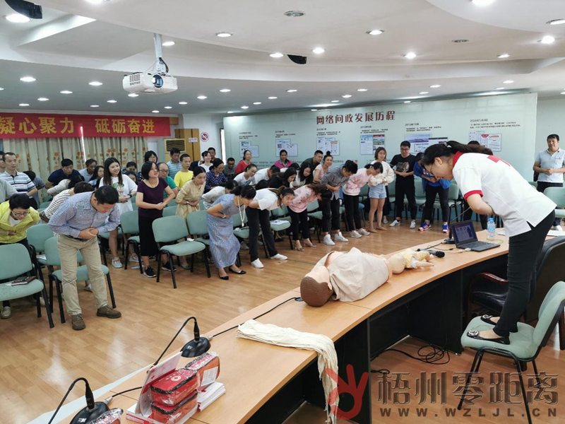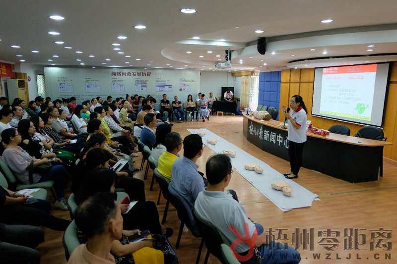 梧州零距離網訊(記者 黃祎婧)為普及廣大干部職工的應急救護知識和技能,增強防災避險和生命健康安全意識,提高處置突發事件的應急能力與自救互救能力,10月23日上午,梧州日報社邀請了梧州市紅十字會的志愿者,在報業大廈十三樓新聞發布大廳,給報社職工開展了一場生動的應急救護專題培訓講座。