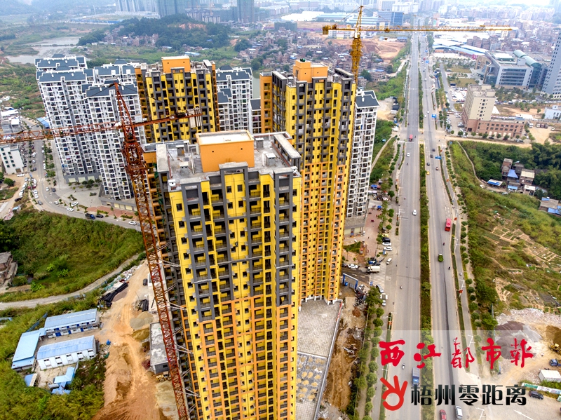 在梧州市保障性安居工程龍平地塊公租房1號-3號樓(龍平公租房小區)工程現場,在建的三幢公租房均已完成外部裝修工作,施工隊正在推進室內裝修和室外配套設施工程。據了解,該工程建成后將提供1008套公租房。西江都市報記者 陳凡 攝