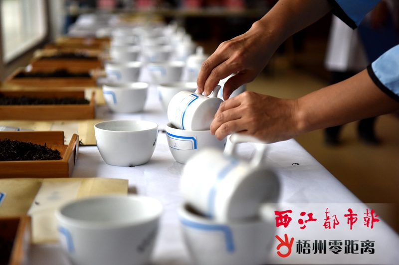 梧州零距離網-西江都市報訊(記者 陳雨燕)“中茶杯”2019梧州六堡茶民間斗茶大賽“金舌頭對決”戰況激烈,“茶葉比斗”項目接力“開戰”。10月26日,“茶葉比斗”項目的首場預選賽,在本次賽事全程總冠名贊助單位——梧州中茶茶業公司的展示大廳舉行。42個參賽茶樣分現代工藝和傳統工藝兩組,按不同的年份輪次展開競逐。其中,15個現代工藝茶樣、11個傳統工藝茶樣成功晉級復賽。