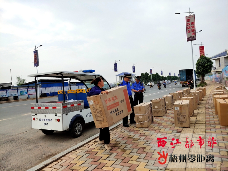 10月25日,城管執(zhí)法人員對(duì)一檔在西堤三路龍新小學(xué)對(duì)出路段賣(mài)鞋子的流動(dòng)攤檔進(jìn)行糾治。據(jù)悉,該攤主的占道擺賣(mài)行為已經(jīng)違反了《梧州市城市市容和環(huán)境衛(wèi)生管理?xiàng)l例》第十七條規(guī)定,即未經(jīng)批準(zhǔn)占用城市道路、人行道、橋梁、人行天橋、地下通道、廣場(chǎng)或者其他公共場(chǎng)所從事設(shè)攤、兜售等經(jīng)營(yíng)活動(dòng)。記者 吳艷虹 攝 |
