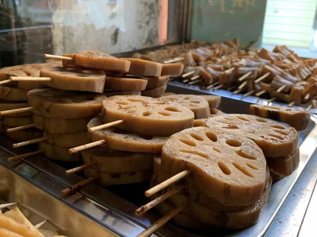 瓊姐對把握食客的口味很有心得:鴨架、鴨翅這些肉質滿滿的部分被鹵汁泡成深褐色,一看就是“男人的浪漫”,深受喜歡喝兩杯的男士的喜愛;鴨心、鴨腸等嚼勁十足,又難飽腹,是很多年輕白領的最愛;蓮藕、豆腐皮、土豆等素菜吸飽了鹵汁,在光線下反著油光,但熱量和脂肪不多,許多女生也會買來吃。 食俠自以為“湖北胃”,信心滿滿地選了暢銷而又重口味的鴨心、鴨架和蓮藕試吃,然后發現自己被自己打臉了。吃進嘴里時,先是一陣香味沖進鼻腔,而后是甜辣的味道鋪滿舌尖,當你以為這就是全部的味道,猛吃幾口時卻發現,原來被欺騙了:嗆辣的感覺在入口的第三秒鐘猝不及防地炸裂口腔,嘴巴辣得發麻,頭皮滲出汗水,但是又忍不住再嘗一口,再重復一遍甜辣炸的口感。在涕泗橫流中吃完了三串鹵味,辣出靈魂,卻讓人欲罷不能。
