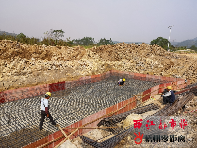 10月23日,施工人員在廣西梧州蒼海國家濕地公園宣教展示區進行景觀橋的鋼筋綁扎工作。