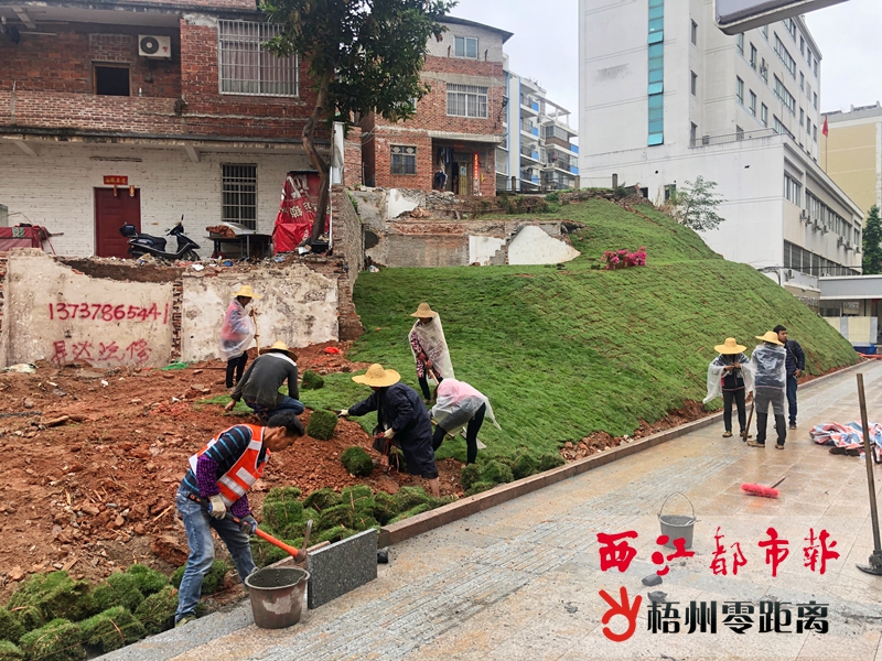 10月28日,在新興珠寶路上,施工人員正在鋪設(shè)人行道和綠化邊坡。 據(jù)了解,新興珠寶路(梧州市市場(chǎng)監(jiān)督管理局旁路段)完成拆遷清理后,施工方正在重新鋪設(shè)人行道,在附近邊坡鋪上草皮,栽種寶巾花。西江都市報(bào)記者 楊揚(yáng) 攝
