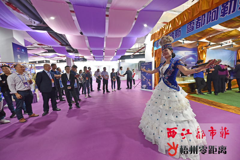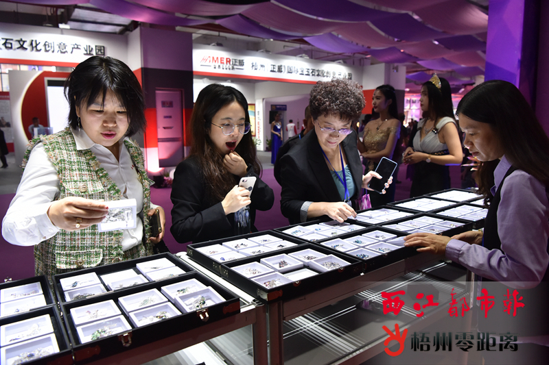 市民驚嘆于人工寶石飾品的美麗和精致。 高質量、高水平的展會同時也贏得了參展商的認可。“宣傳力度大,關注度高,讓我們更有信心展現我們的商品和家鄉。”新疆展區寶滿晶珠寶的負責人馬秀永表示,此次,他除了帶來新疆阿勒泰地區的海藍寶石、碧璽寶石、石榴子石等珠寶玉石外,還將新疆的歌舞帶到現場,讓梧州的市民感受到濃郁的新疆民族風情。