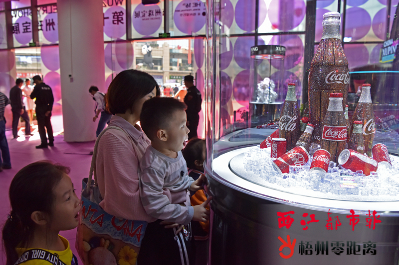 鑲滿人工寶石的“可口可樂”瓶讓小朋友幾乎看呆了。 商家積極展銷,市民也開心逛展。“不僅商品豐富,展現珠寶的形式和現場表演也讓人眼前一亮。”在珠寶展位前挑花了眼的市民楊娟是珠寶展的忠實粉絲,她表示,今年展會還通過現場走秀、歌舞表演等形式,立體化地呈現珠寶飾品的特色,在這樣的氣氛帶動下,她也選購了一些心儀的珠寶飾品。