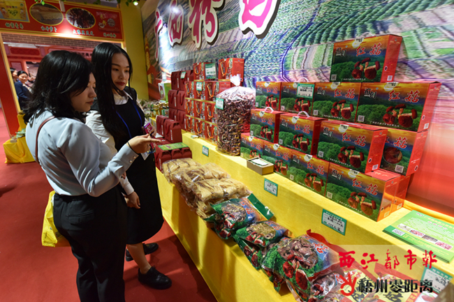 梧州零距離網-西江都市報訊(記者 蒙敏瑩)11月2日,在梧州三祺城二樓開展的第十六屆梧州寶石節“嶺南佳品 梧州手信”梧州名特優產品展銷會現場人潮涌動。當天,1000多種名特優產品齊齊亮相。